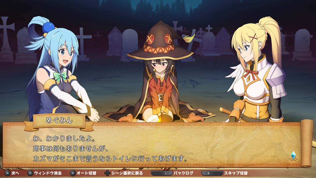 本作为《为美好的世界献上祝福 为贪婪的游戏献上审判》的后续作,讲述和真等人捡到了一块可以自由生成服装的石板,但这是一块让人性格反转的诅咒石板,结果达克妮斯变成冷酷的女王、慧慧变成萝莉塔至上主义、阿库娅变得像真正的女神一般……和真为了解开女主角们身上的诅咒,要一边打工做任务一边制作解咒的服装。是采用了完全原创的故事剧情。